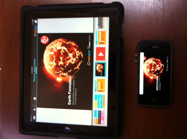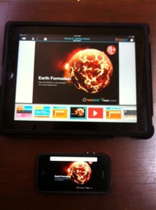 I wanted to share a super cool app that I just started using. It’s called Nearpod and it allows teachers to create interactive content that runs on their iPads and share that content with students on student-controlled devices. In the picture here I’m showing the teacher app installed on my iPad and the student app installed on my iPhone. The teacher app has pushed the image shown to the student app.